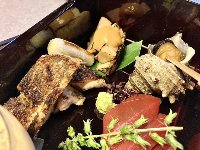 ◎「サザエの壺焼き」濃いめの醤油と出汁で炊かれており、ザクッとした食感と苦みがとても美味しかったです。これだけで、すぐに瓶ビールお代わりです…。
