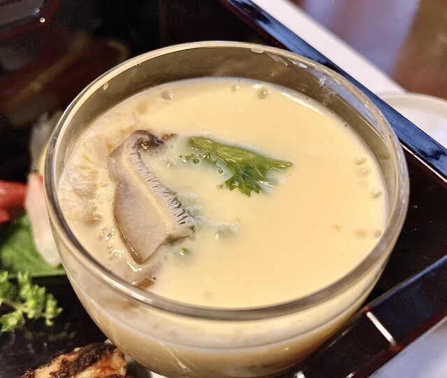 ◎「茶碗蒸し」具沢山です。椎茸・筍・鶏肉や鰻、銀杏も入ってました。卵たっぷり感があり、少し固めですが、トロッとした食感と濃いめの出汁感で美味しかったです。