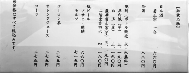 お料理も美味しく会話も弾み、芋焼酎のボトルを空けてしまいました。ついでに、お店にある全ての炭酸水ボトルを飲み尽くしてしまいました。お店は大きくないですし、我々が最後でしたので問題なく…。