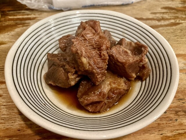 ギュッとするしっかりとした食感、濃いめの味付け、脂身も所々ありますが、脂感はそれほど強くなく、赤身とタレの組み合わせが美味しいです。ビールが進みます…。