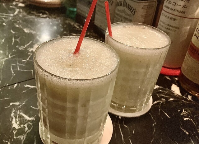 カウンターの天井は高く開放感があり、雑然と並んだボトル、古びたカクテルガイドが置かれていたり、マスター(バーテンダーさん)との距離感がよく、やっぱりバーはいいなぁと…。