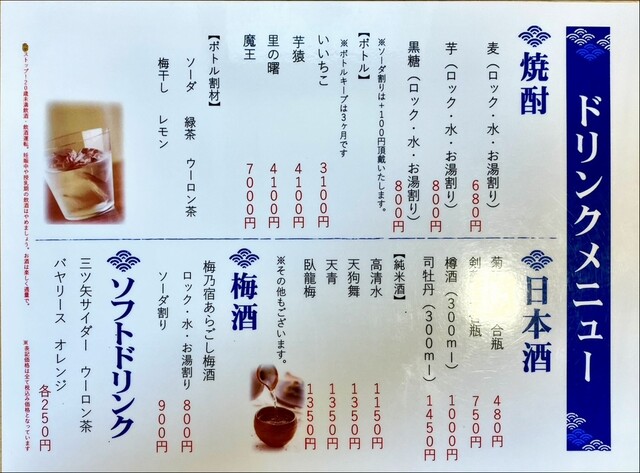 「生ビールジョッキ(税込¥680)」「ウーロン茶(税込¥250)」