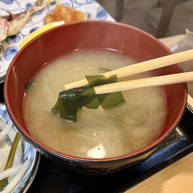 ごはんはお米が立っており、プリッとした食感でふっくらな炊き立て。お味噌汁はほどよいお出汁感で、お味噌も若干控えめ。すっきりとした味わいで、美味しかったです。