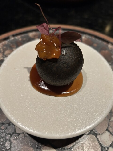 〆のプティフールはごま団子。カシューナッツと胡桃の餡入り。完食はならず(;`皿´)グヌヌ