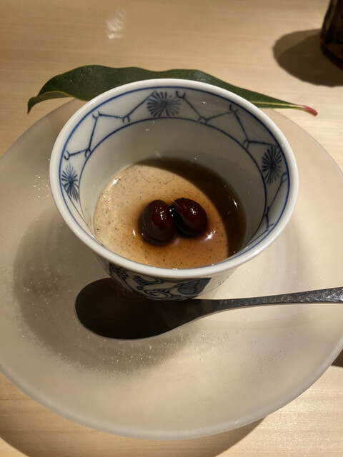 デザートは、きなこのブラマンジェ。丹波の黒豆が添えられ、きなこが濃くて甘さもすっきりで、美味しかったです。