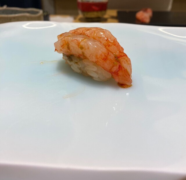 シャリは固めのパラパラ、辛口でありつつも酢、塩加減、ともに非常に好み。シャリの温度は36~38℃が主体のようなので、人肌が最適ということですね。