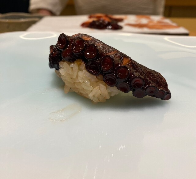 煮蛸はほんのりだけ甘く煮てありますがシャリと合わせると、しっかり淡麗辛口。途中に甘いものを挟まない構成なんだな、と理解。