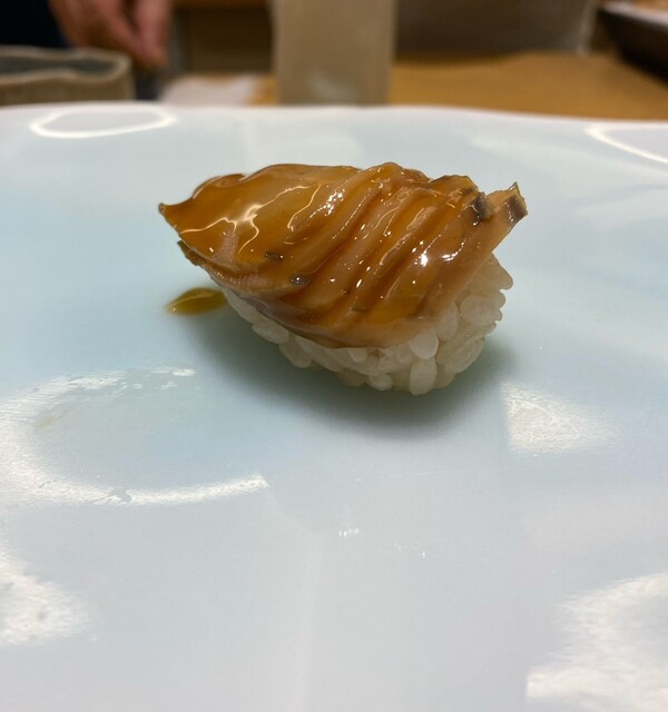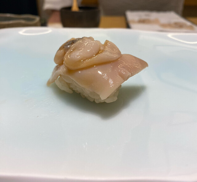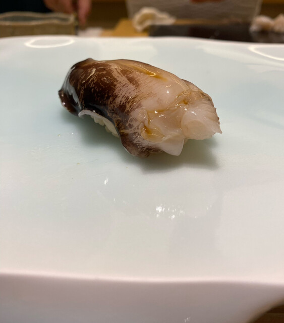 大きな北寄貝。ネタに合わせシャリの量を替えているらしく、巨大握りになっていましたがw、とても美味しい。北寄貝を普段は食べないのですが、とても質が高かった。