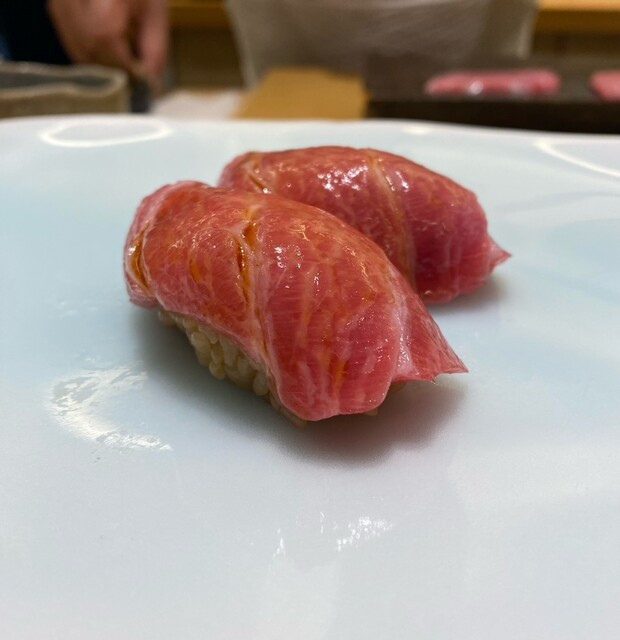 トロは見た目では脂が滲んでいて凄く期待したのですが、食べるとなぜか身が固くて脂もすっきり。熟成の加減の問題なのか、期待する本鮪の歯触りから遠く、甘みも薄く、はっきりと好みではありませんでした。