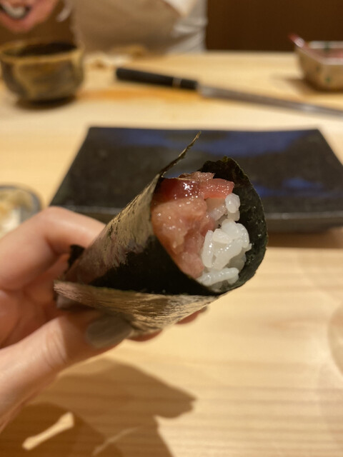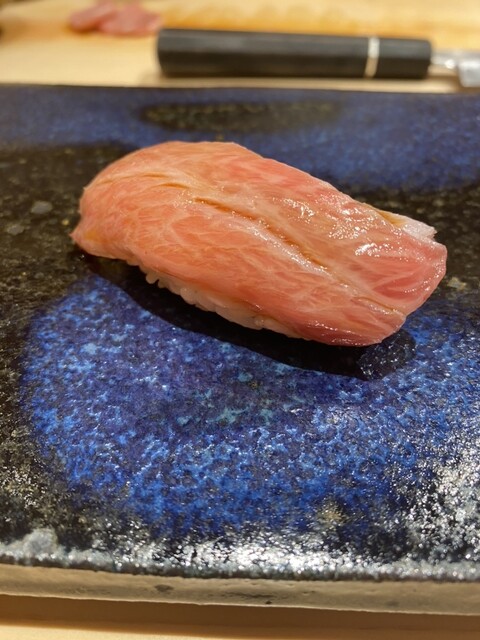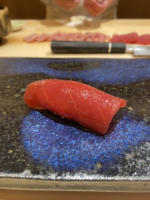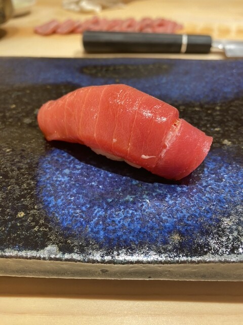 鮪の赤身は相変わらずにきりとのバランスが最高で美味しい。今日の鮪は塩釜産らしい。