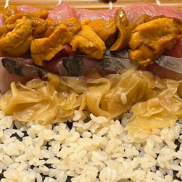 鱧のお出汁がしっかり出た最初のお汁から、お口の中でとろける穴子や雲丹、どれも丁寧なお仕事を施されたお鮨に大満足のランチでした。