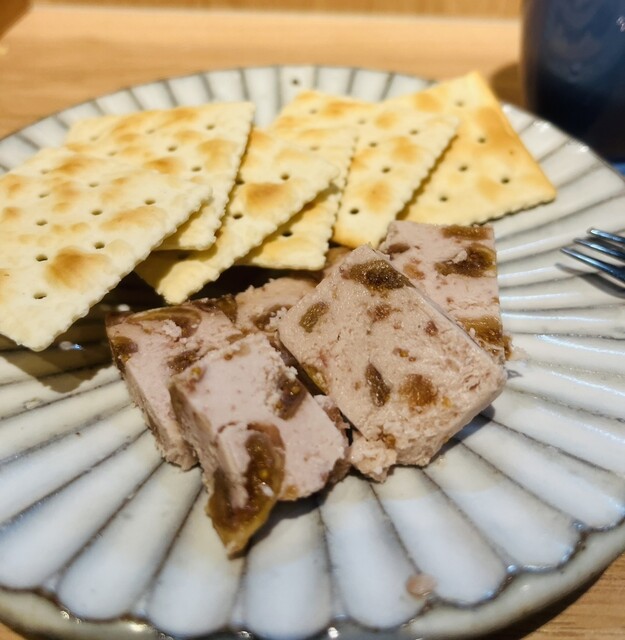 これが噂のイチジクバター冷え冷えのイチジクバターにクラッカー美味しい、手が止まらない