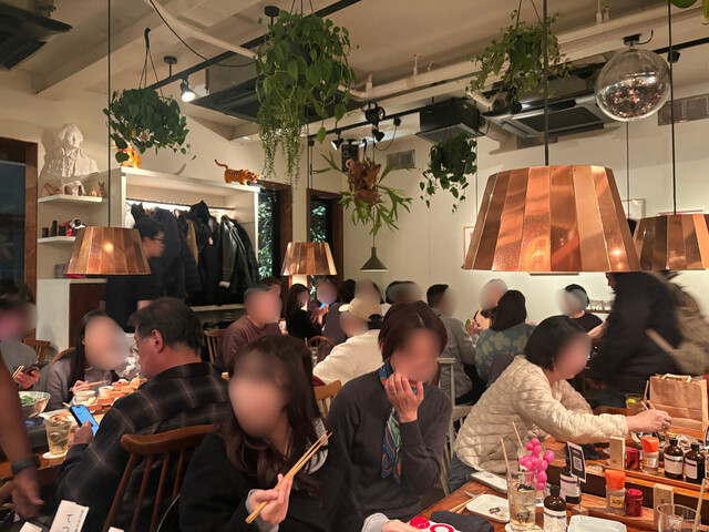 店内は、厨房を囲むカウンター席とテーブル席があり、大勢のお客さんで大賑わい。 活気はあるのに、落ち着かない騒がしさは感じにくく、空気が明るいのが特徴です。
