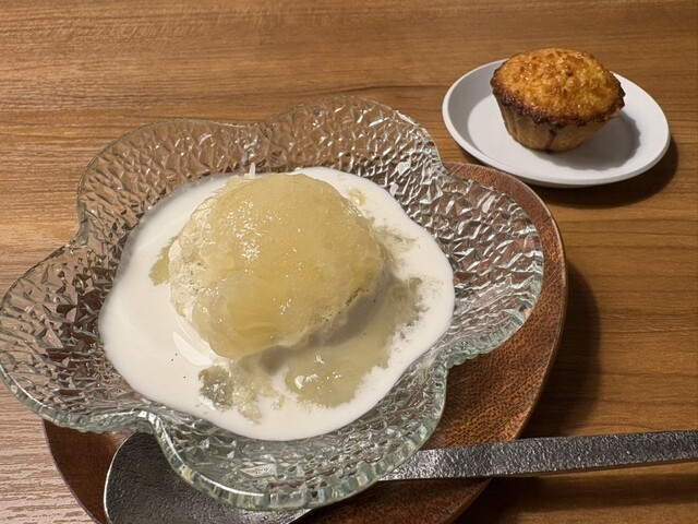 そこへ晩白柚のジュレが「ぷるん」と乗り、食べ進めるほどに柑橘の香りが広がります。
