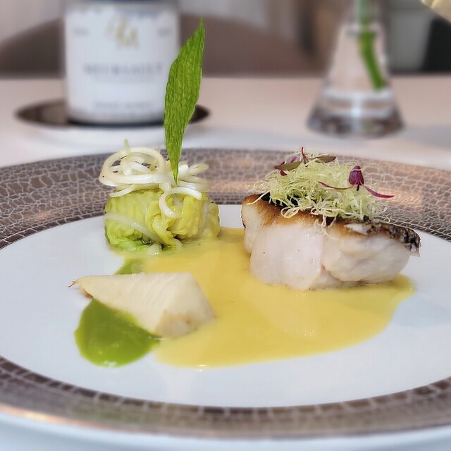 クロムツのポワレ キャベツのファルシ ソースサフラン