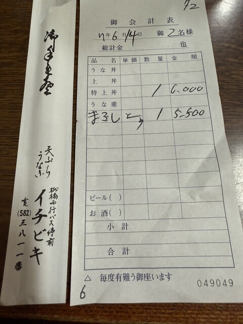 注文は、特上鰻丼6,000円と、