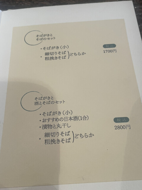 そばがきとそばのセット¥1,700で粗挽きそばを注文。