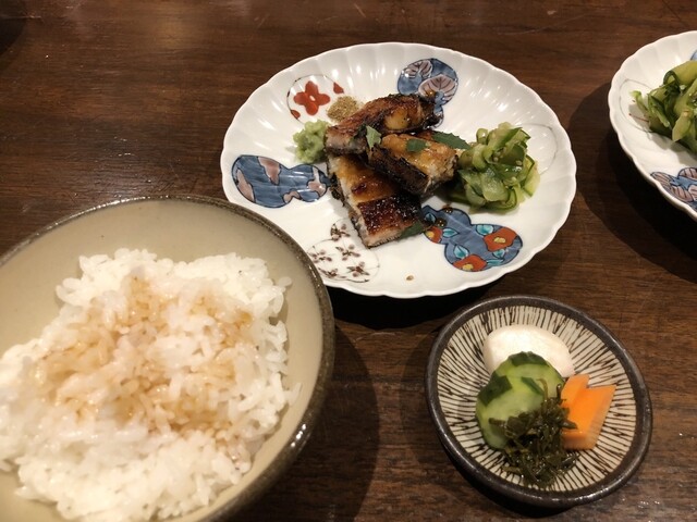 昨日ひつまぶしを食べたばかりですが、残り1切れという事で、さっそく取り置きしてもらいます。釜炊きご飯が炊き上がるタイミングで蒲焼きを。ご飯に蒲焼き用のたれを少しかけてもらい鰻を口に。ほかほかのご飯に蒲焼きが合うなぁ〜、旨すぎます。
