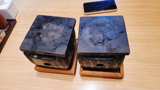 ここで、両面を炙る時の脂汁の溢れ具合と石板上での焼き上がりの音と香りから改めてジューシー感が伝わり最高‼️