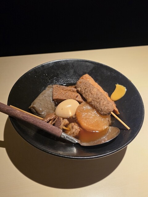 ①だしを含んだ大根がじゅわっとほどけて、玉子・こんにゃく・練り物まで出汁の旨みが芯まで到達して味わい深い