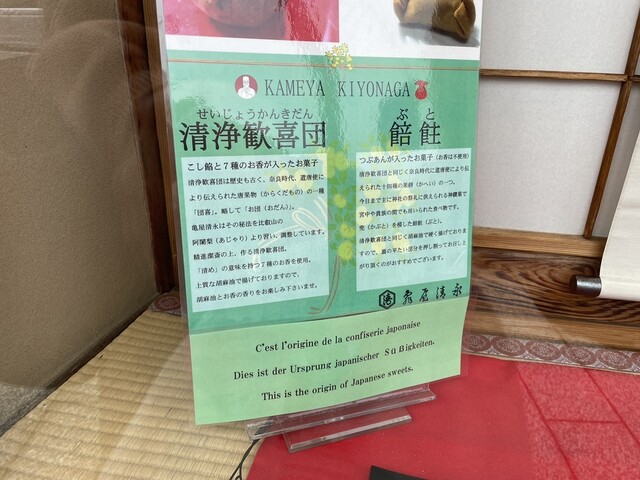 略してお団と言い、遠く奈良時代遣唐使により我国に伝えられた唐菓子の一種で、数多い京菓子の中で、千年の歴史を昔の姿そのまま、今なお保存されているものの一つであります。