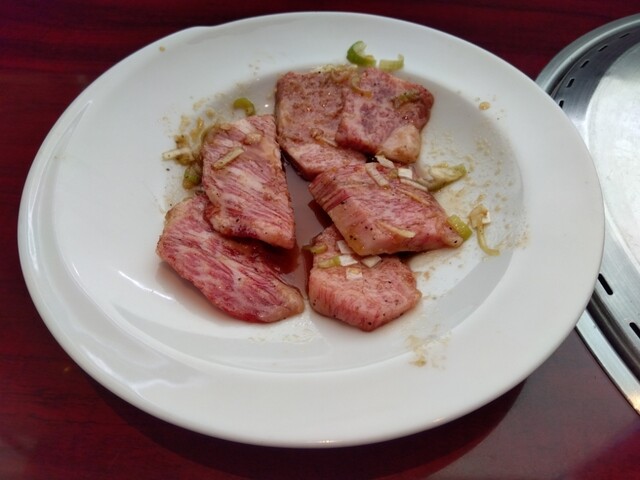 サイドメニューの牛切り落とし900円はとてもお得です。形はバラバラですが、味は叙々苑のカルビで美味しいです。