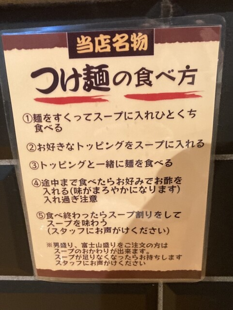 つけ汁は甘さのある濃厚動物魚介タイプ。
