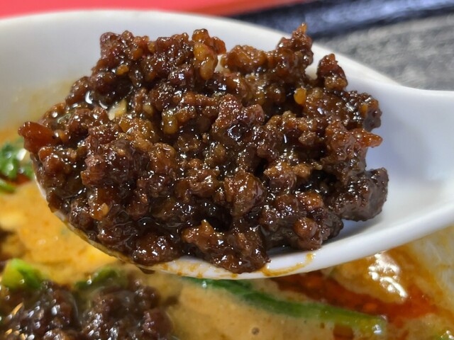 自家製甜麺醤で炒めたミンチ肉と青菜が