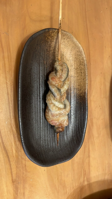 さて、席について見回すと「注文してから焼き上がるまで40分かかります」との張り紙。そらそうですよね。あらかじめ頼んでいた関西風鰻重とは別に、ビールと串焼き5本盛りを発注。