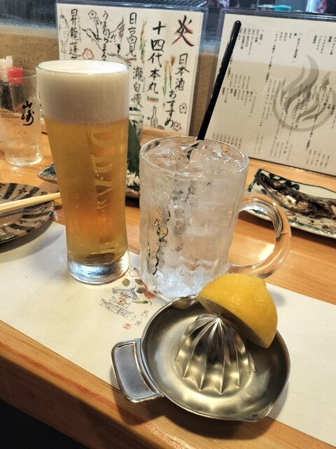 今回は、2025年6月にオープンしたばかりの「炉端 炎 横浜店」に初訪問。横浜駅西口から徒歩1分という抜群の立地です。店内には本格的な囲炉裏があり、炭火で焼かれる食材を眺めながらお酒を楽しめるのが魅力。木の温もりを感じる和モダンな空間で、カウンター席のほかテーブル席も完備されています。平日の夕方にもかかわらず多くの客で賑わっており、早くも人気の高さがうかがえました。