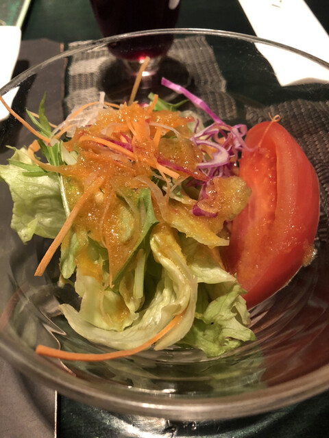 席につき、飲み物のオーダーをすると、コースで出てくる内容で「ガーリックライス」か「白飯」の選択と