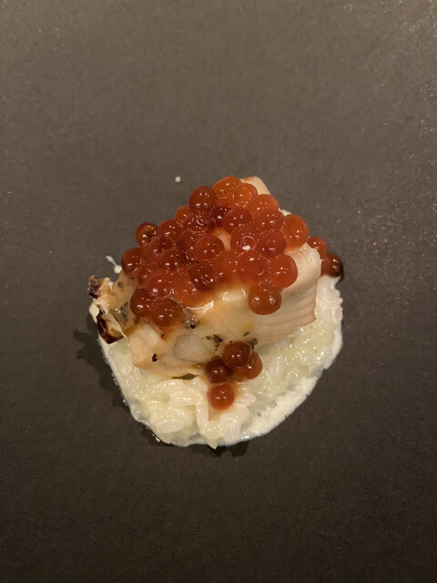 7.幸リゾット(足寄のチーズ)、vin blanc、噴火湾産の秋鮭、いくら