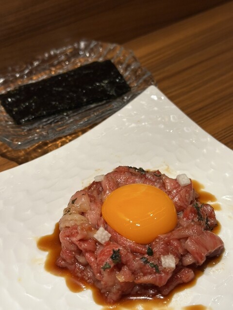 ・【元祖】名物和牛生ハンバーグトリュフ香る卵黄と共に 500円