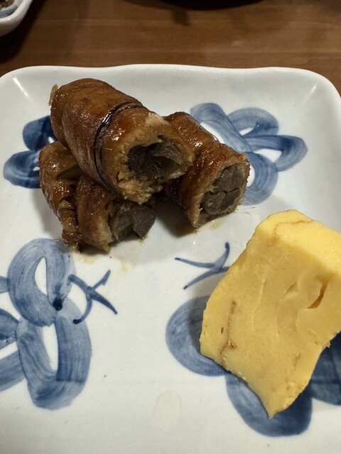 うなぎ、からすみ、鮑、アンチョビ入りのモッツァレラチーズ、青菜炒め、お刺身盛り合わせ、鯛のサラダ巻き、紀州蒸し、いくら、にんじん柚子胡椒炒め、手打ちそば、フレンチトーストのグレープシュゼット、お新香盛り合わせ