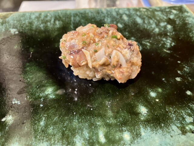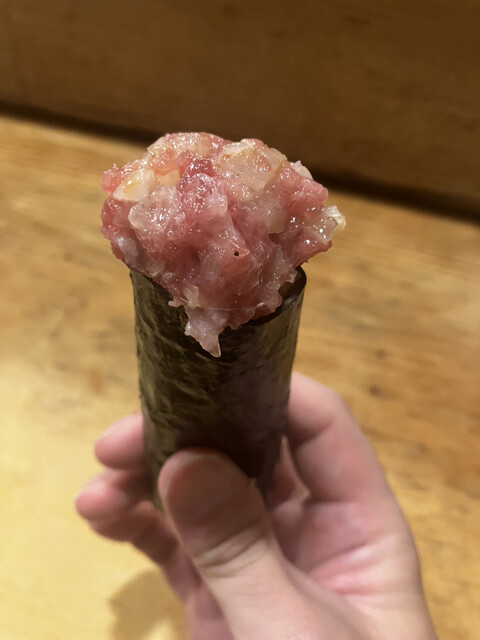 →丁寧に包丁で刻まれたトロが、らっきょの酸味と絶妙にマッチ!