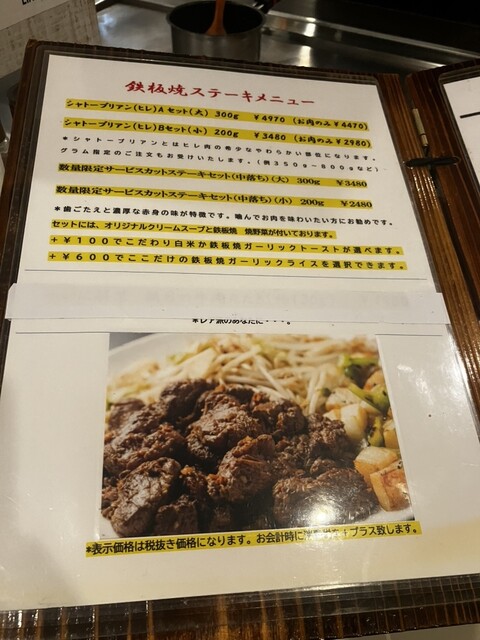 ステーキ・鉄板焼き 百名店 " 鉄板焼 朝日 "さん へ行ってきました。