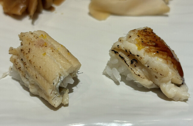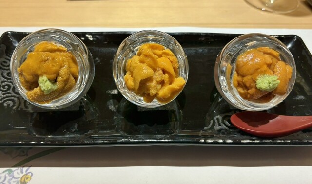 どれも吟醸系(純米吟醸酒,純米大吟醸酒)であり、お酒だけで飲むとその味がしっかり目でそれだけで味わい深い日本酒であるものの、料理と合わせると、ややフルーティな香りにあっさり目の飲み口が抜群に合い、不思議と握りとマッチするような最適な選択でした。