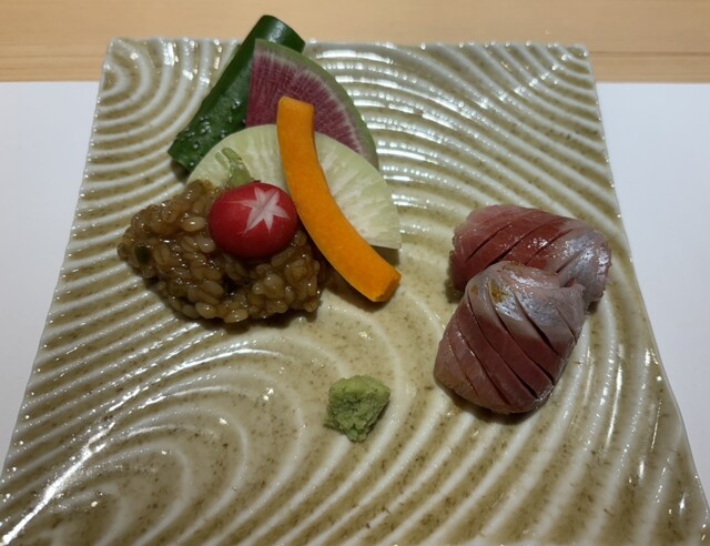 また、食感から旨味・甘味、さっぱりとした味わい...等々、1つ1つの料理の状態だけでなく、こちらの口の中や感情、頭まで、次の料理を頂くにあたってこれ以上ない最適な準備ができているように、自然と促されているような提供順となっている、考え抜かれたこだわりのコースでした。