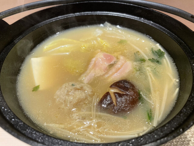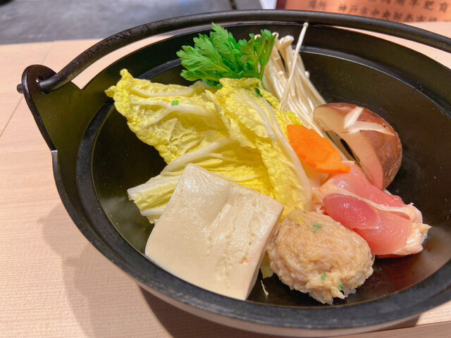 鶏鍋(鶏出汁の鶏鍋(胸肉、つくね、季節の野菜とキノコ))