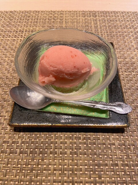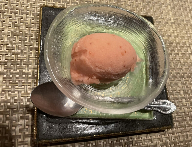 甘味(ブリュレ風プリン、あまおうシャーベット)