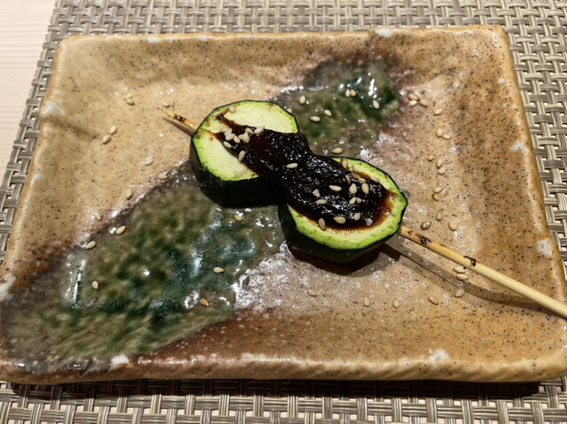 途中に提供される焼き野菜のフルーツトマト、銀杏については、素材本来の味がこれ以上ないという程引き出されている、さっぱりと頂ける焼き野菜であり、その味は絶品でした。