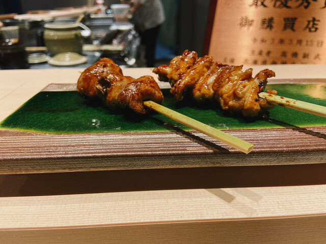 またこちらの焼き鳥は、焼く途中に鶏油(チーユ)を塗って焼いており、これによって焼き目がとても綺麗にかつ香ばしくなり、さらに絶妙な技術と相まって、コクがグッとでた焼き鳥となっておりました。