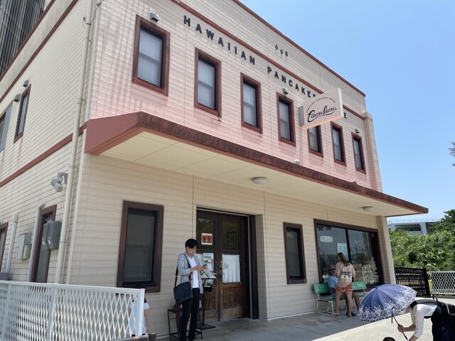 こちらは、沖縄国道58号線沿いでドライブしている道沿いにある、お洒落なパンケーキ屋さん。