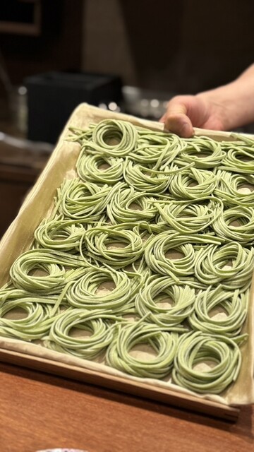 イカ墨のソースのパスタ新生姜 ふり檸檬