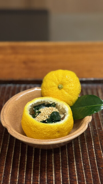 柚子釜(春菊ほうれん草なめこお揚げさん白胡麻)
