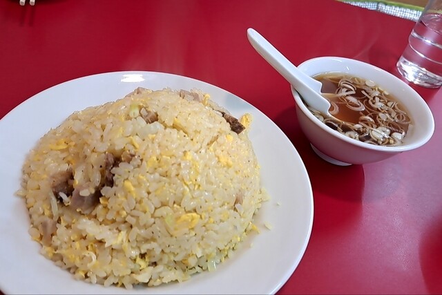炒飯は角切りチャーシューが大きめのぎごろごろと入り、塩コショウの加減も絶妙。