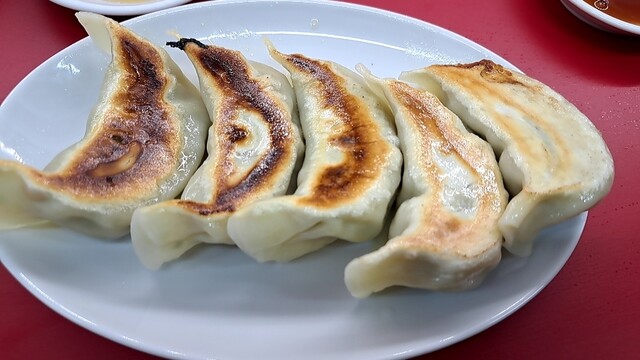そして餃子が到着、大きいです、以前より大きくなっています。これで400円はびっくり、コスパ良すぎ。手作りのカワも、中の具材も以前と変わらず最高にウマイ。