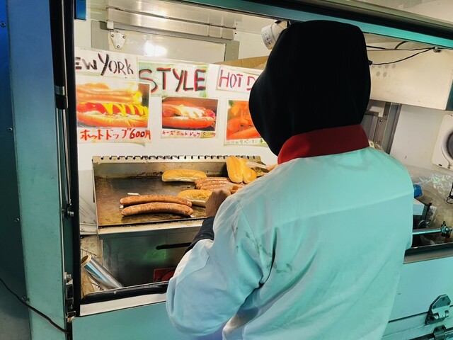 伝説のホットドッグ屋台「ケニーさんのホットドッグ」に新宿区役所前にて偶然遭遇しました。軽トラのフードトラックには鉄板に焼かれた巨大ソーセージが有り見るからに美味しそうで焼かれてるソーセージの音と匂いにヤラレてしまいました。パンからはみ出た味付けされたソーセージはスパイシーかつ肉汁と肉が詰まって弾力の有る弾ける皮、食べ応えの有るホットドッグで最高に美味しく頂きました。