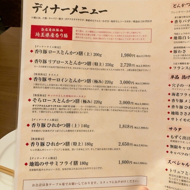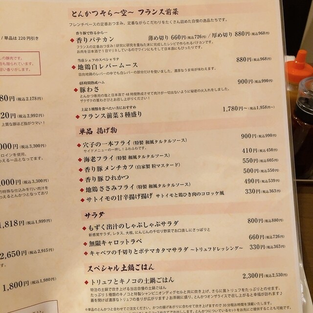 奥はそらロースとんかつ膳3300円、手前はひれかつ膳上1999円。