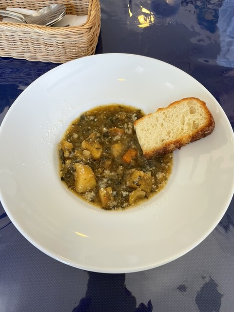 久しぶりに行くと、前菜が変わって、冷製スープになっていました。フォッカッチャと一緒に食べると美味しい!